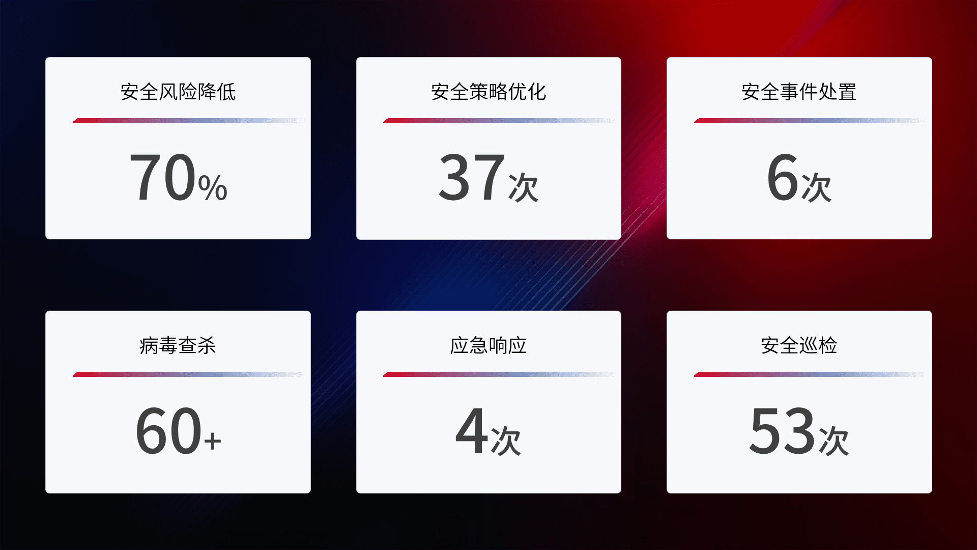 提供全面的安全事件报告体系,,,包括处置报告、、、周报、、季度和年度总结,,,,结合持续监控,,,帮助客户深入了解网络安全状况。。。。